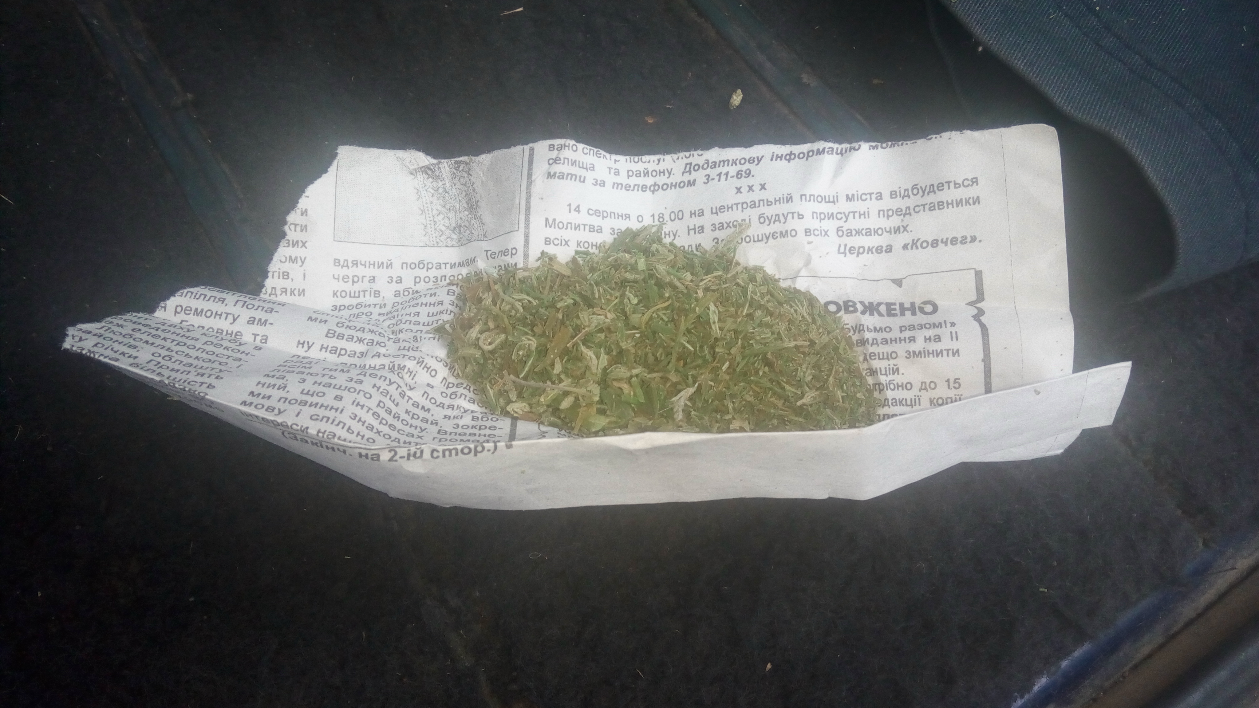 По даному факту були повідомлені співробітники Ренійського відділення поліції. По прибуттю останніх речовину в рамках слідчих дій було вилучено. Після провітрювання автомобіля було прийнято рішення про повторне використання службового собаки. До огляду вже був залучений собака «Карат», який виявив пластиковий контейнер з речовину рослинного походження сіро-зеленого кольору вагою більше 5 грам.