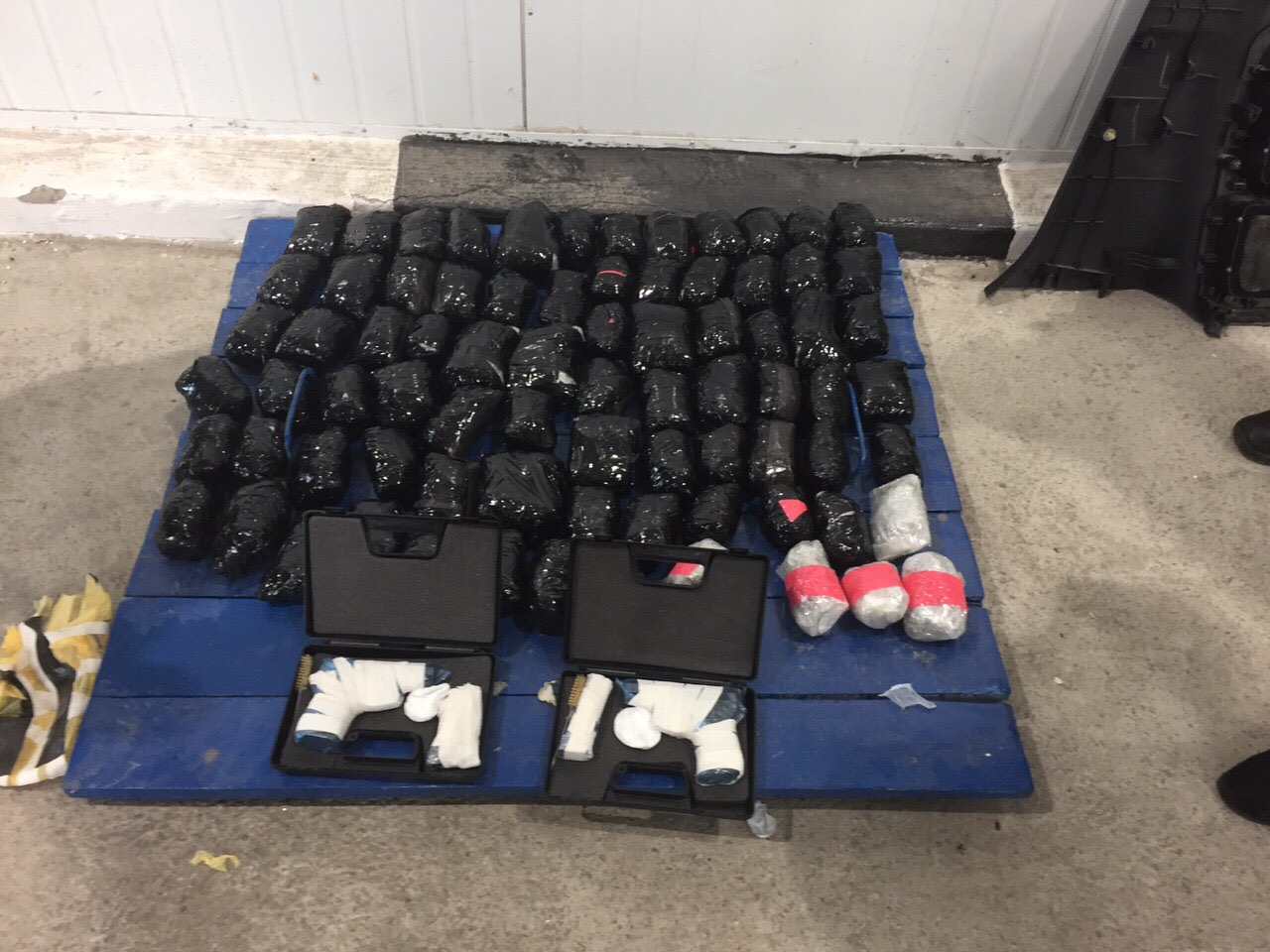Під час прикордонно-митного оформлення автомобіля «Сітроєн», що прямував до Росії, на нього спрацювала службова собака Белла, натренована на пошук наркотиків. У ході подальшого огляду транспортного засобу правоохоронці виявили майже 80 пакунків з рослинною речовиною сіро-зеленого кольору. Вони знаходилися під обшивкою заднього лівого крила. Загальна вага зілля сягає близько 12 кг. Окрім цього в автомобілі було виявлено два травматичні пістолети калібром 9 мм та 50 набоїв до них.